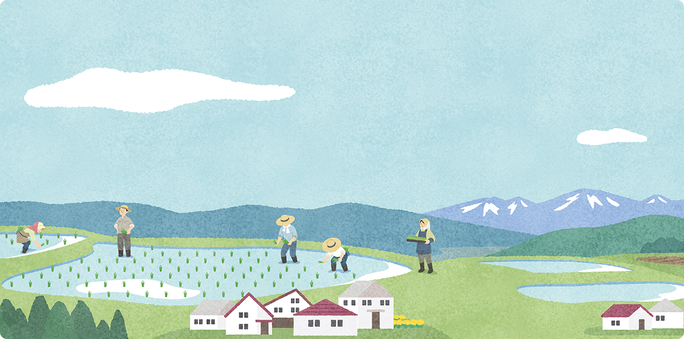 私たちは、農家さんたちが農作物をたくさん収穫できるように、田んぼまで水を運ぶための水路をととのえたり、必要な水の量を管理したりしています。